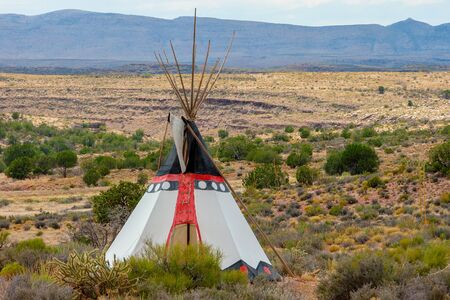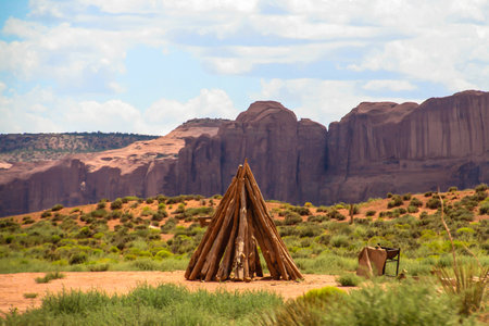 Teepee in Monument Valley. Monument Valley is an American natural site located on the border between Arizona and Utah. The site is part of a Navajo and Colorado Plateau reserve.