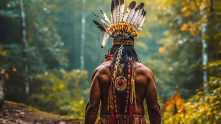 Depicting a rich history, a person adorned with a Native American headdress symbolizes cultural honor.
