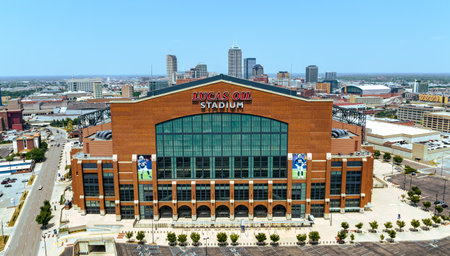 Lucas Oil Stadium in Indianapolis - panoramic aerial view - INDIANAPOLIS, USA - JUNE 08, 2023