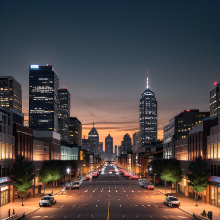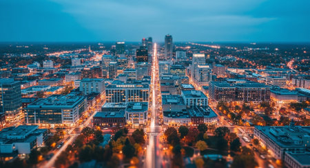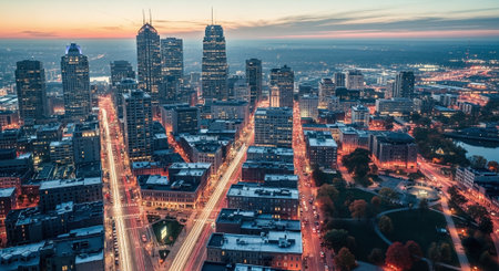 Top view of downtown Indianapolis skyline at twilight