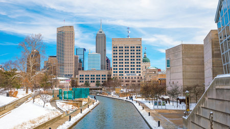 Downtown of Indianapolis by Indiana Central Canal, Indiana, USA