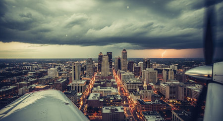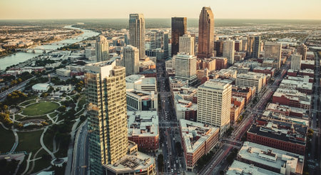 Aerial view university campus area looking into the city center urban core of downtown Lexington KY