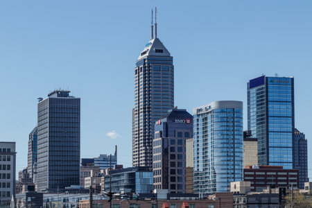 Indianapolis - Circa April 2019: Indianapolis Downtown Skyline on a Sunny Day including the Salesforce, BMO Financial, and Regions Bank towers VII