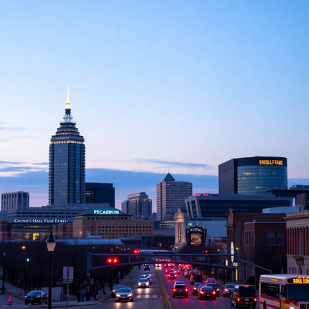 Downtown Indianapolis skyline at twilight