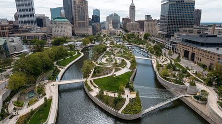 Tranquil Urban Park with Canal in Cityscape, Indianapolis