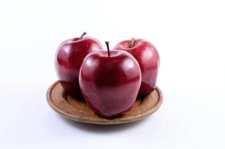 Fresh red apples on wooden dish