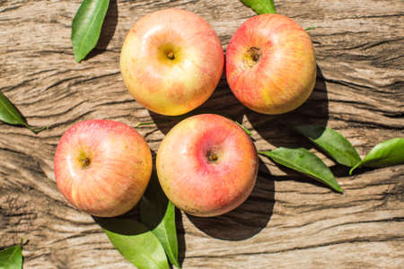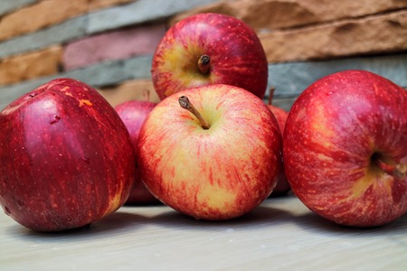 apple fruit on the wooden table, ripe red apples