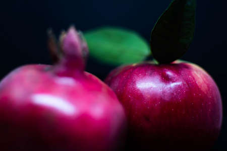 Pomegranate and apple on the table