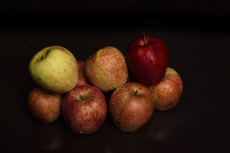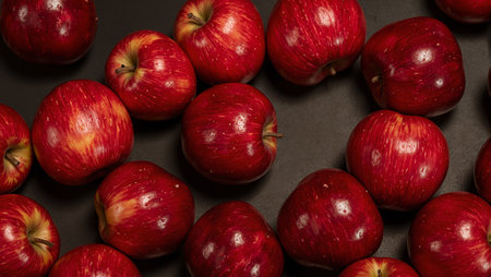 Red apples on black background, healthy fruit.