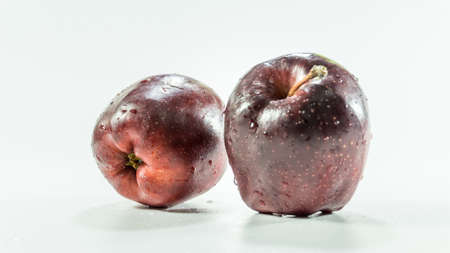 Close up of photo of very fresh red apples isolate on white background