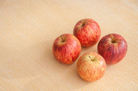 Fresh apple of the gala variety on wooden background. Variety of apples discovered in Canada, the gala is considered one of the best of its kind to eat directly on the feet.
