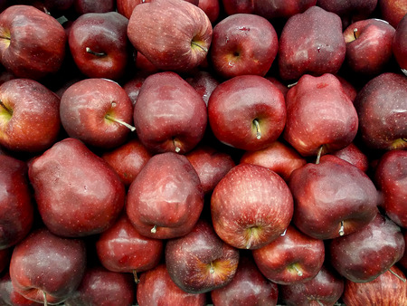Red apples background. Red apples for sale at the farmers market.
