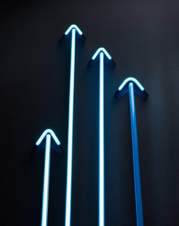 AI Generated. Neon Arrows Pointing Upward in Dark Background