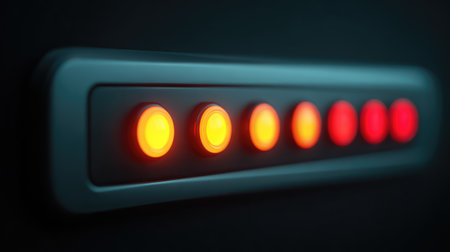 Close-up view showcasing multiple control panel lights glowing in warm orange and red tones against a dark background, highlighting modern technological design and functionality.