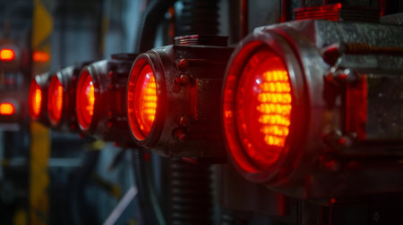 Close-up of Red LED Indicators on Industrial Equipment ai generated
