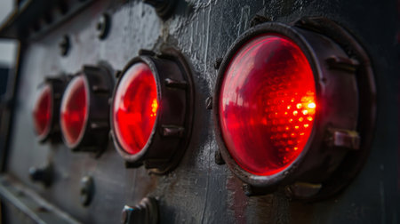 Close-up of red warning lights on a control panel. ai generated