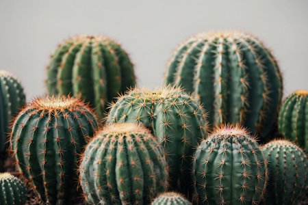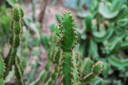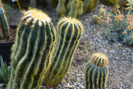 Cactus plants in the botanical garden, closeup of photo