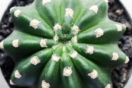 Closeup view of green cactus as a background, top view, texture.