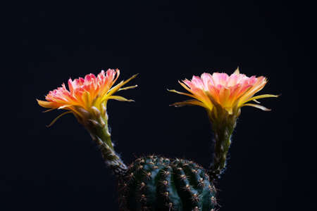 Closeup beautiful blooming Lobivia cactus flower on black background