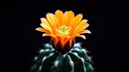 A stunning close-up of a cactus flower in full bloom, showcasing its vibrant colors and intricate details against a dark background.