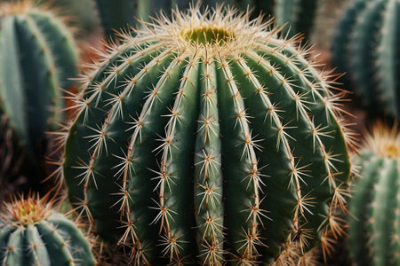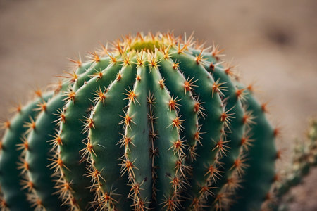 cactus (ferocactus) in the detail select focus, art picture of plant, macro photography of a plant with a small depth of field