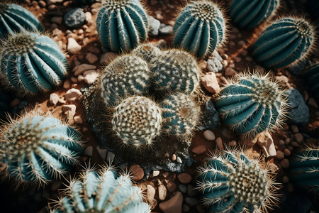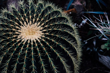 Top view of exotic cactus in desert