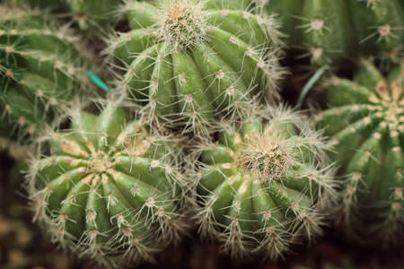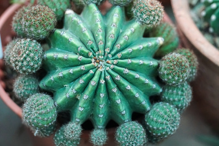 Groups of green cactus budding indoor garden