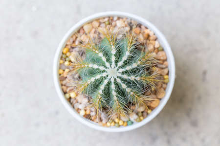 small decorative cactus in pot, top view
