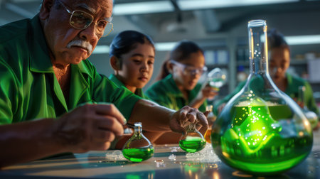 Focused Students in Science Lab with Test Tubes.