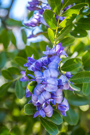 Purple flowers of False indigo bush (Amorpha fruticosa), Lead Plant in the garden. Summer and spring time.