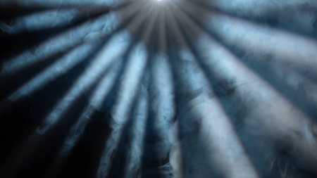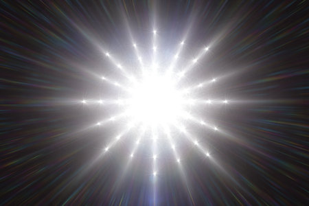 Bright light rays emanating from a central point against a dark, textured backdrop.