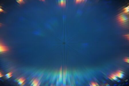 Close up shot of lights setup. Studio with black background, many dots with blue rays of light shine through the surface, blinding spotlight.