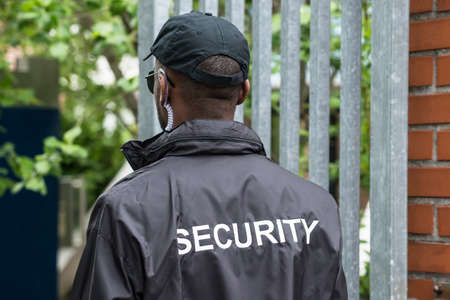 Rear View Of A Male Security Guard Wearing Black Uniform