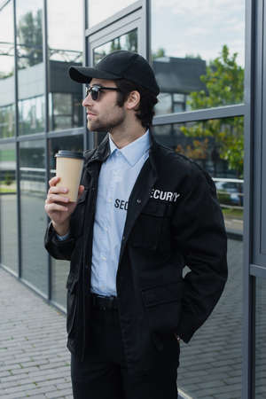 Security guard professional safety patrol man police employee mall safe business protect serve confident authority public space secure guarding agent staff shop convenience store grocery