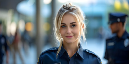 Positive camaraderie among friendly blonde policewoman and coworkers vibrantly chatting. Concept Workplace Relationships, Communication Skills, Positive Environments, Team Unity