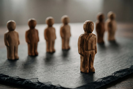 Colorful Wooden Figures in a Row Diversity, Equality, and Tolerance Concept, Human Right campaign