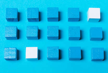 Geometric, abstract creative background of blue and white cubes. Concept of problem solving, logical thinking, idea