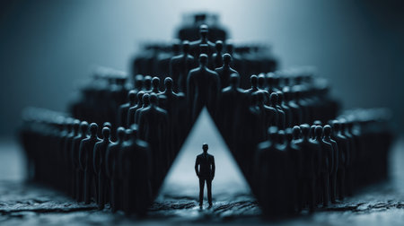 A singular figure in a sea of minimalism celebrating individuality and self reflection among many