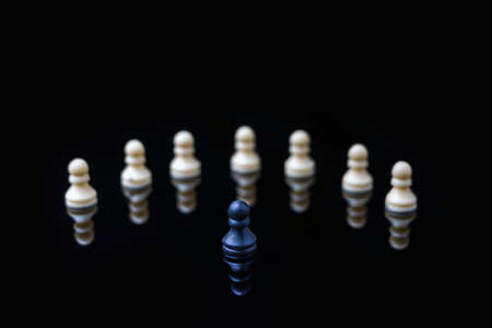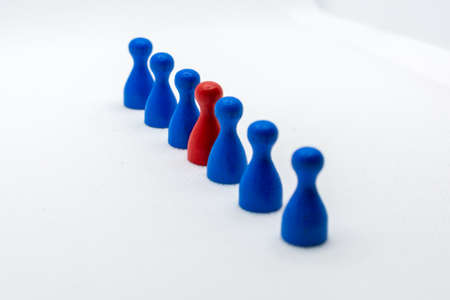 Leadership concept. A red leader stands out from the crowd of other pawns.