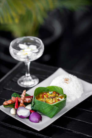 tradtional cambodian amok fish curry meal on restaurant table