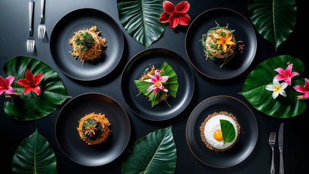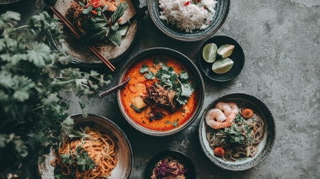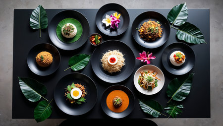 A beautifully arranged assortment of dishes showcasing vibrant colors and fresh ingredients, perfect for a cultural feast and dining experience.