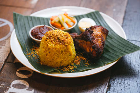 Nasi Lemak is a commonly found food in Malaysia, Brunei and Singapore. It is also an unofficial national food in Malaysia. Selective focus.