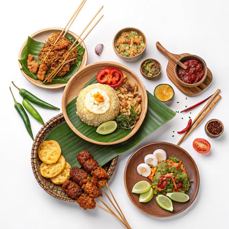 Deliciously Vibrant Malaysian Street Market Fare: A Captivating Overhead Glimpse -- AR 3:2