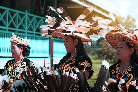Tenggarong, Indonesia-August 27th,2016. Traditional dance of dayak people with traditional costume participated in erau International folk art festival on August 27th, 2016 in tenggarong, Indonesia.