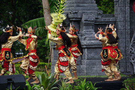 BALI, INDONESIA - FEBRUARY 28, 2020: Traditional balinese dance performed in GWK Garuda Wisnu Kencana Cultural Park on Bali, Indonesia