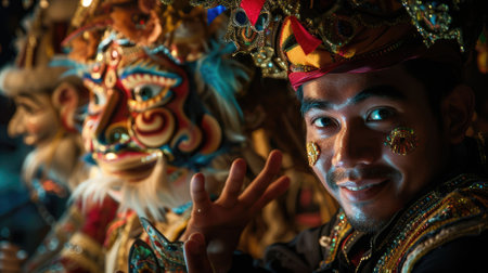 Tourist admiring traditional Balinese dance performance in Indonesia, experiencing local culture and heritage