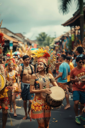 Colorful traditional festival celebrates indigenous culture with music and dancing generated by artificial intelligence