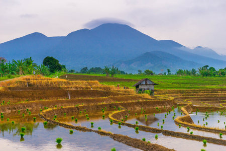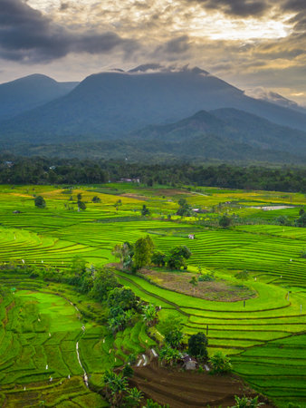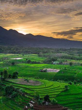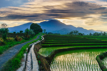 beautiful morning view indonesia panorama landscape paddy fields with beauty color and sky natural light