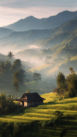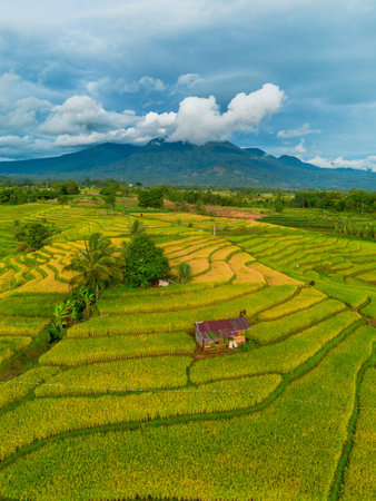 indonesia beauty landscape paddy fields in north bengkulu natural beautiful morning view from Indonesia of mountains and tropical forest