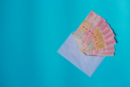 Indonesian banknotes inside an envelope, symbolizing monetary gifts or payments, ideal for financial, gift, or transaction-related themes